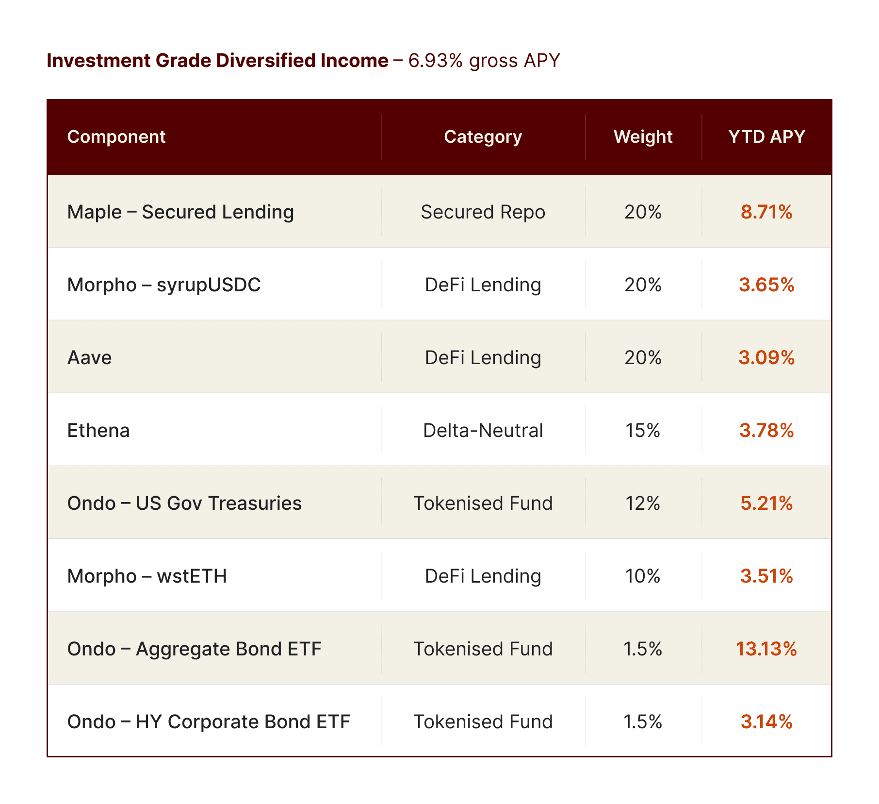 A strategy that blends all four is combining different execution environments with different timing, different settlement assumptions, and different risk parameters – inside a single portfolio with unified NAV and 24/7 liquidity.